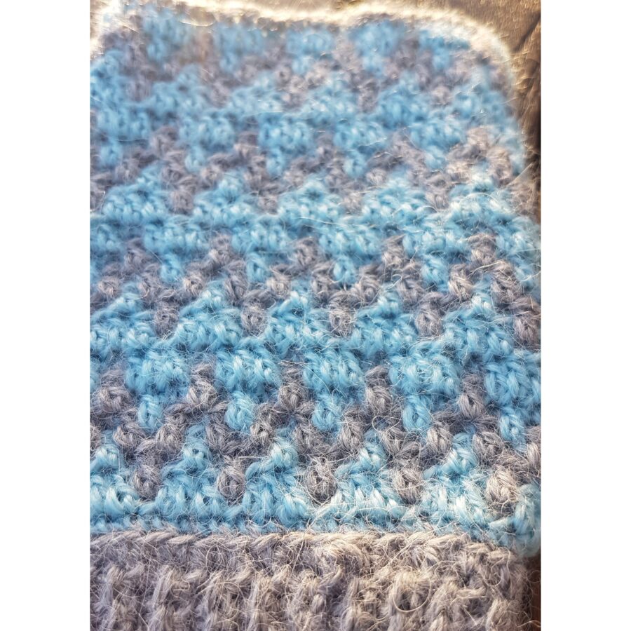 Get ready for the more wintry weather with these stylish fingerless gloves. They are made using the crochet technique ‘mosaic crochet’. They are 100% alpaca mittens and they are ultra soft and warm. Each pair is unique - Ingrid never makes two the same. They will fit any average adult size.