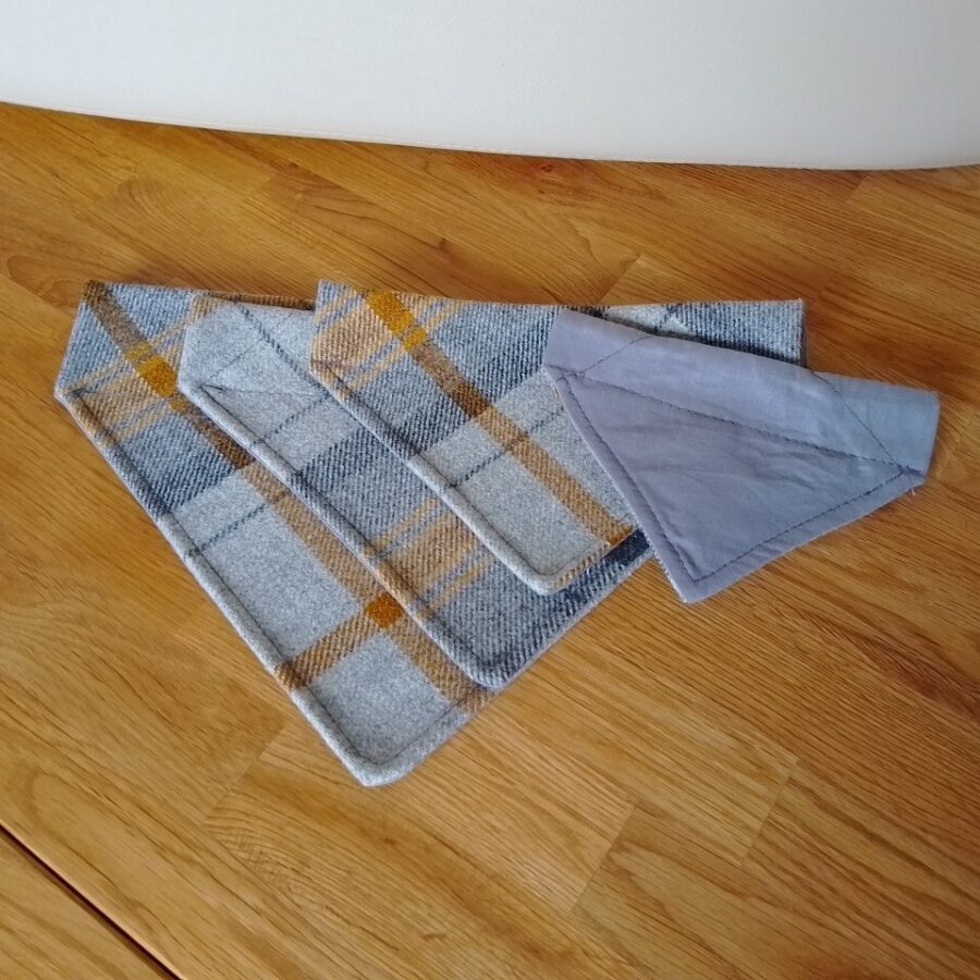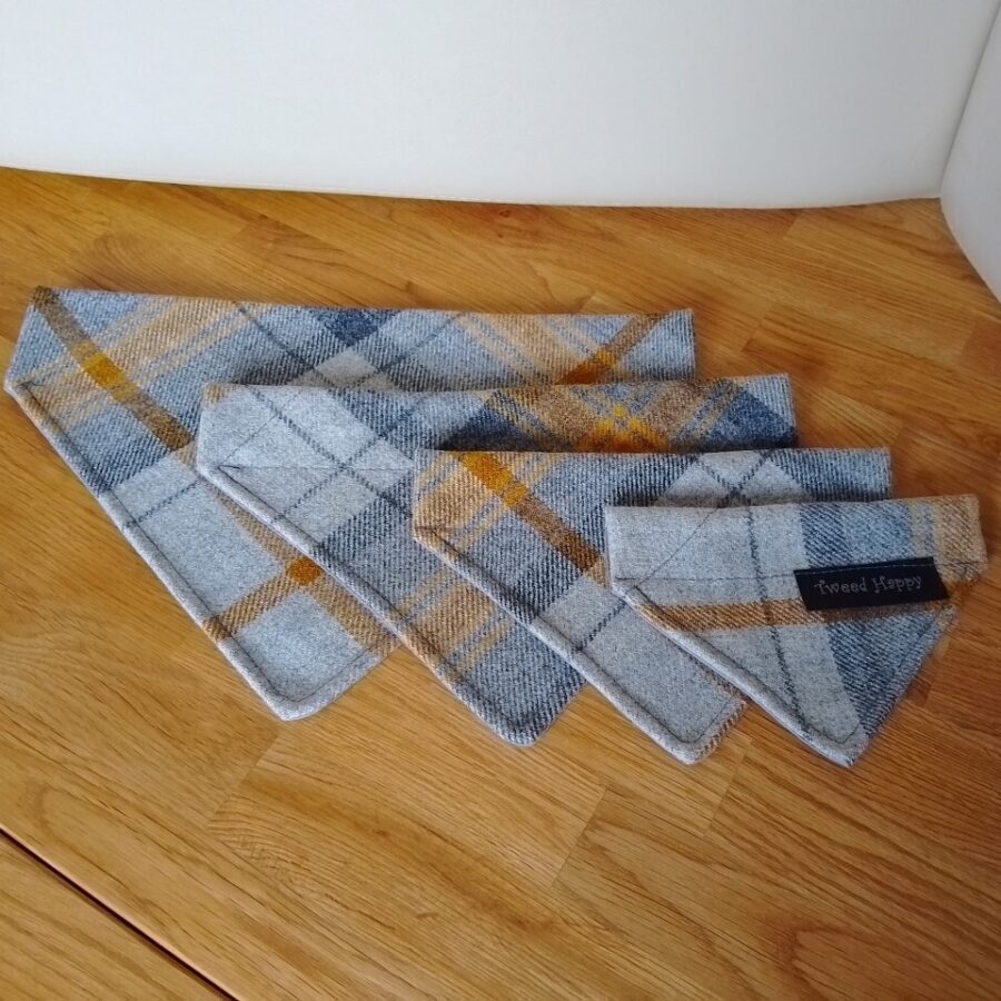 Gorgeous dog bandana made in a grey/yellow Shetland Tweed with grey cotton lining. Available in different sizes.