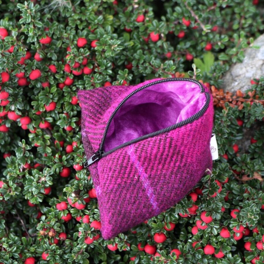 Hot Fuchsia Harris Tweed Sankuku Pouch Purse
