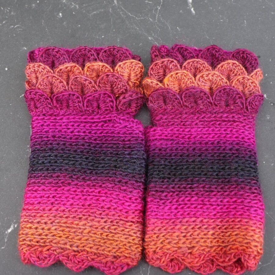 Unique pair of crochet fingerless gloves in a lightweight variegated yarn (30% wool, 70% acrylic) in beautiful 'hollyhocks' colours. They are crochet in the round so there are no uncomfortable seams. They can be a sophisticated addition in all seasons. Soft, warm, cozy, beautiful and really practical fingerless gloves. They will keep your hands warm while allowing you all the agility you need to do many activities like taking photographs outside, texting, driving, etc... Size is suitable for women.
