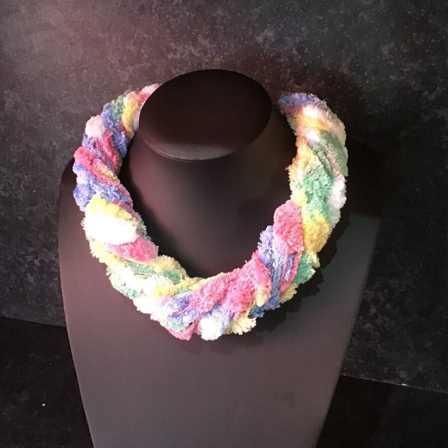 Twisted Scarves are designed to sit softly just below the neckline. Twist by holding the bead caps at the ribbon ends to create the desired length and shape. Open the magnet by holding adjacent beads and gently pull. The magnetic clasps are nickel free. Ideal to wear to compliment any outfit or to match your shoes or handbag etc to complete your desired look. Easy to wear and so suitable for anyone who struggles to fasten necklaces etc due to arthritis or other medical conditions.