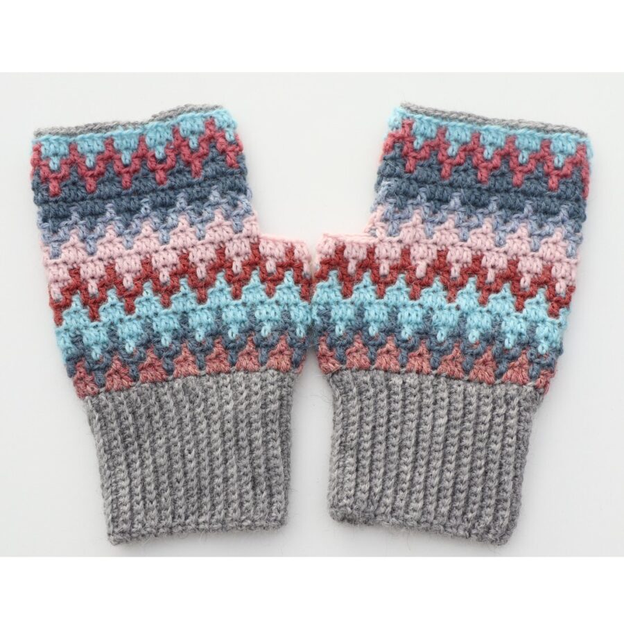 Get ready for the more wintry weather with these stylish fingerless gloves. They are made using the crochet technique ‘mosaic crochet’. They are 100% alpaca and wool mix mittens and they are ultra soft and warm. Each pair is unique - Ingrid never makes two the same. They will fit any average adult size.