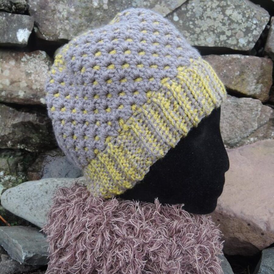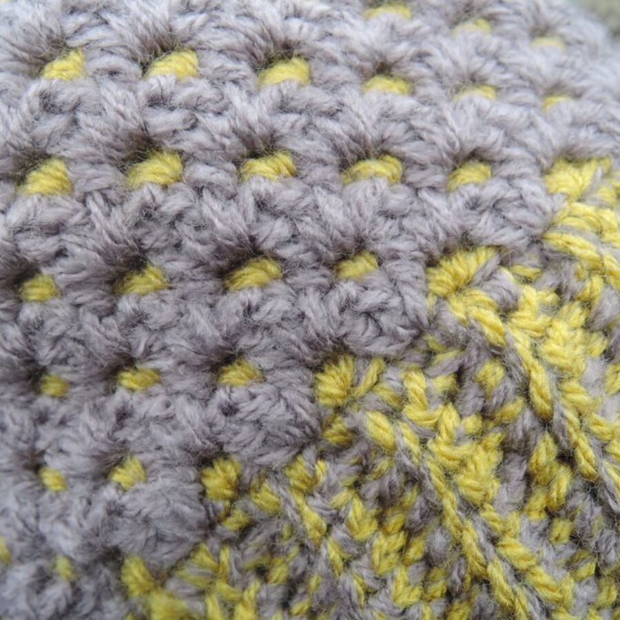 The stunning design of this crochet hat makes it reversible, so you have two hats for the price of one. Each side has a different design. Each hat is unique. The hat is crocheted with 2 contrasting colours, medium grey and mustard yellow using high quality acrylic yarn. This hat should fit any adult. All this sellers items are made in a smoke free and pet free environment. The hat can be washed in a machine at 30 degrees.