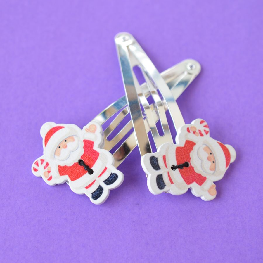 Pair of Jumbo Button Hair Clips Father Christmas