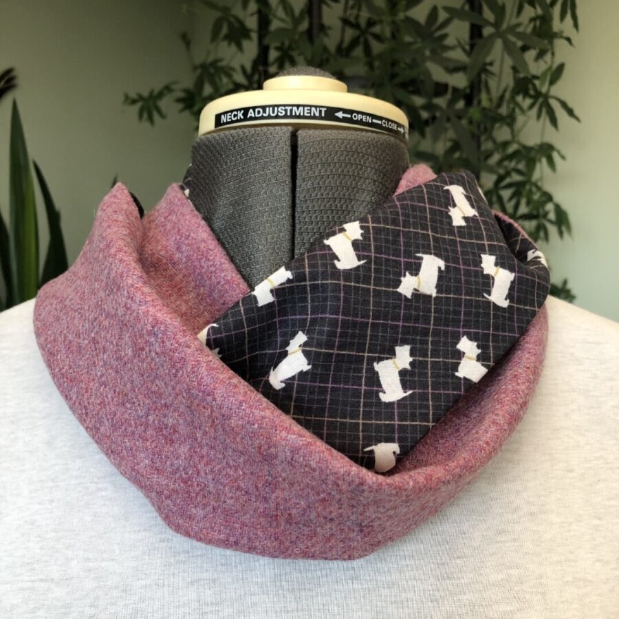Pink Tweed Infinity Scarf Scotty Dog Lining