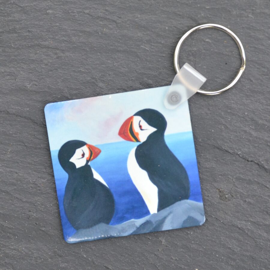 This puffin keyring is made in the Highlands using Kevin O'Neill's original artwork printed on both sides onto robust MDF using a sublimation process.