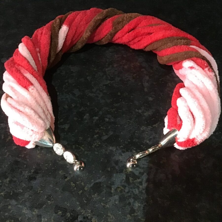 Twisted Scarves are designed to sit softly just below the neckline. Twist by holding the bead caps at the ribbon ends to create the desired length and shape. Open the magnet by holding adjacent beads and gently pull. The magnetic clasps are nickel free. Ideal to wear to compliment any outfit or to match your shoes or handbag etc to complete your desired look. Easy to wear and so suitable for anyone who struggles to fasten necklaces etc due to arthritis or other medical conditions.