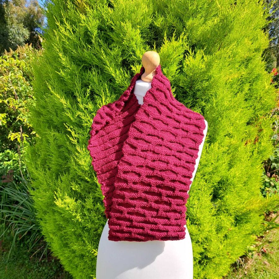 This scarf is a versatile addition to any wardrobe, it can be worn loosely as an infinity scarf or, twisted twice around the neck as a cowl or as a head and neck covering.