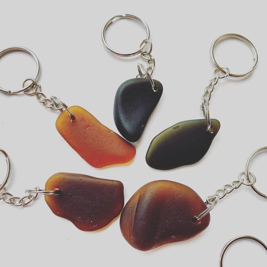 These lovely sea glass key rings come in a choice of four colours ( white, brown, green or sea foam) and choice of finish between clip ring or keyring. Select your choices using the drop down menu. Each one is made with a piece of genuine Shetland Island sea glass and comes in an organza gift pouch.