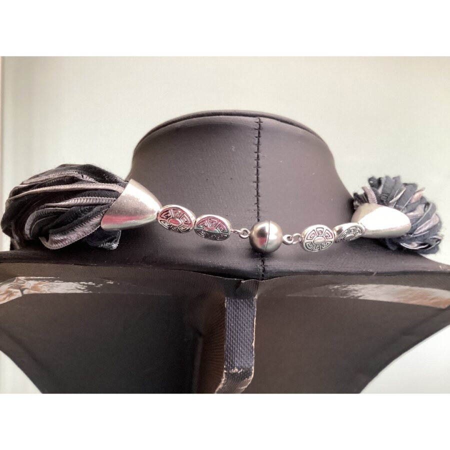 Twisted Scarves are designed to sit softly just below the neckline. Twist by holding the bead caps at the ribbon ends to create the desired length and shape. Open the magnet by holding adjacent beads and gently pull. The magnetic clasps are nickel free. Ideal to wear to compliment any outfit or to match your shoes or handbag etc to complete your desired look. Easy to wear and so suitable for anyone who struggles to fasten necklaces etc due to arthritis or other medical conditions.
