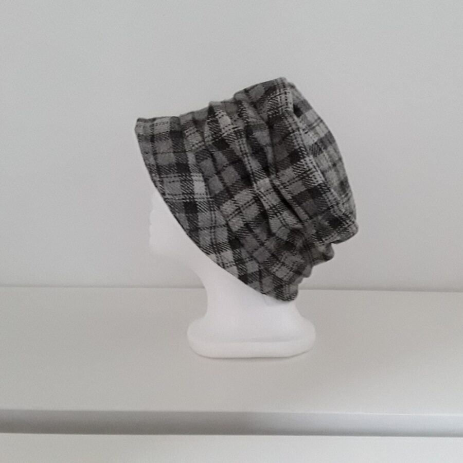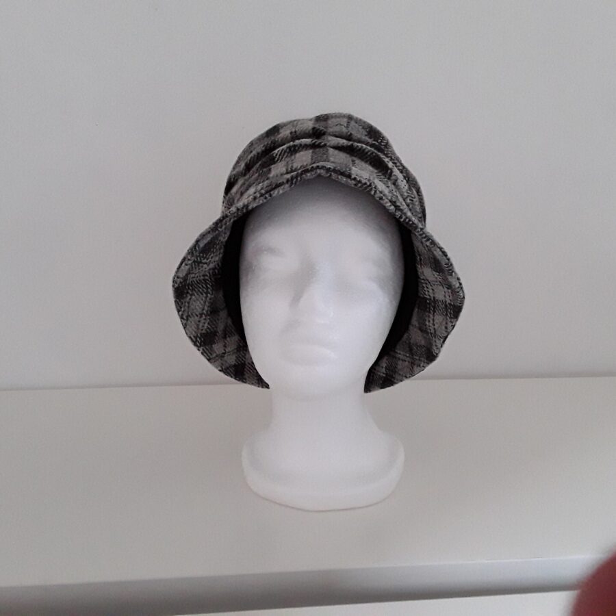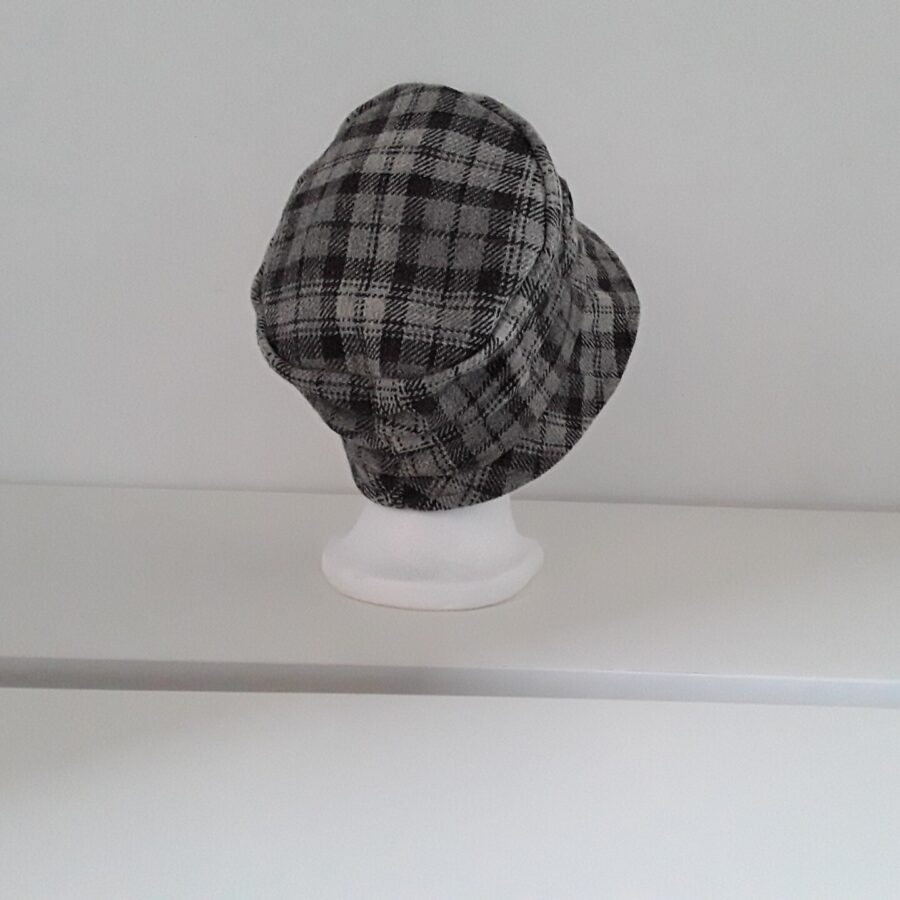 A fantastic flapper hat made in Storm Cloud 100% pure wool Yorkshire tweed with a black lining.