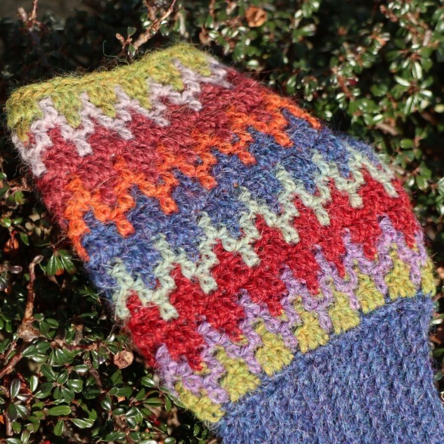 Get ready for the more wintry weather with these stylish fingerless gloves. They are made using the crochet technique ‘mosaic crochet’. They are 100% alpaca wool mittens. Each pair is unique - Ingrid never makes two the same. They will fit any average adult size.