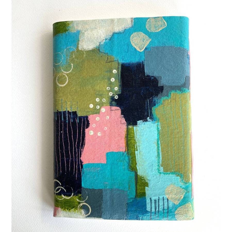 Capture your creativity in style with this one-of-a-kind hand painted canvas sketchbook. Lovingly crafted with a soft yet durable hand painted canvas cover, featuring unique abstract designs that make every book truly one of a kind.