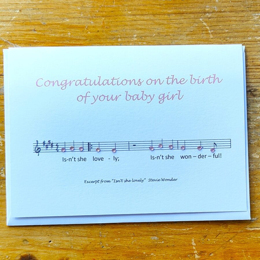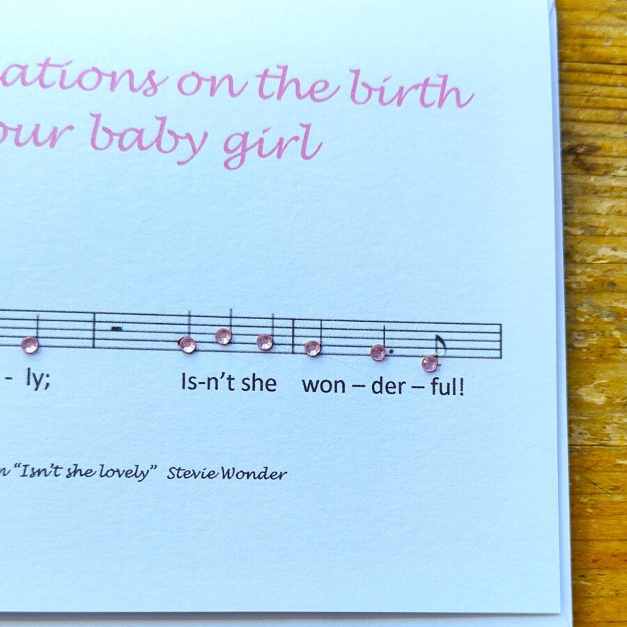This card includes an excerpt from a well known song corresponding to the genre of card and has sparkly gems on each note, creating a unique and eye catching item. They are blank inside for your own message and come with an envelope in a home-compostable clear sleeve. The receiver could also frame the card afterwards as a meaningful keepsake.The maker creates all her cards from original concept, throughout the making and printing processes to the packaged product.