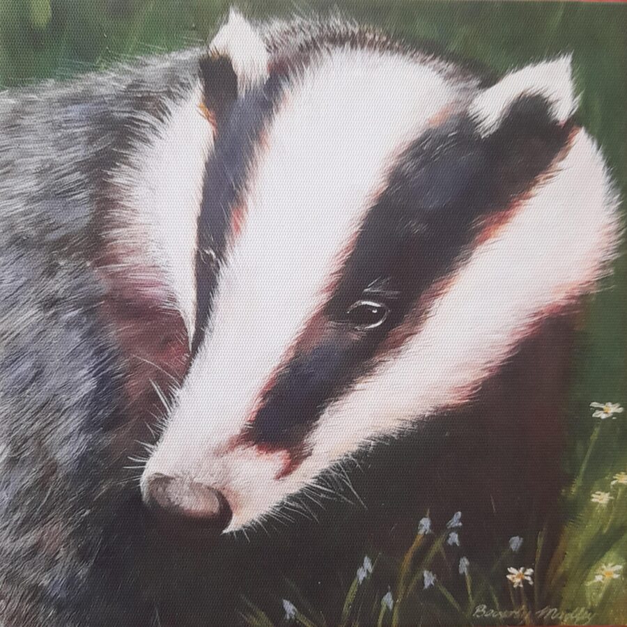 A greetings card featuring a badger based on an original painting by Beverly. Printed on 300 gsm card with white envelope and blank for your own message.