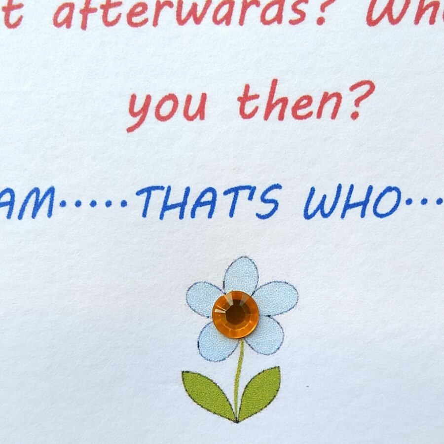 This card includes sparkly gems and/or buttons, creating a unique and eye catching item. It is blank inside for your own message and comes with an envelope in a home-compostable clear sleeve. The receiver could also frame the card afterwards as a meaningful keepsake. The maker creates all her cards from original concept, throughout the making and printing processes to the packaged product.