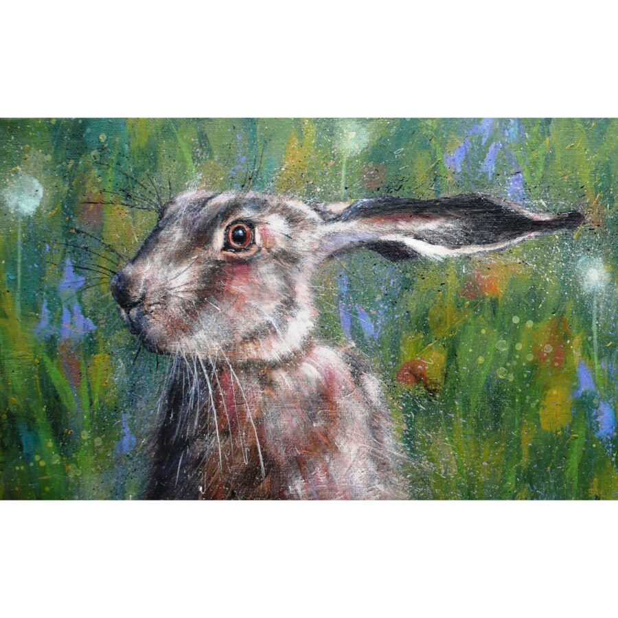 A greetings card featuring the profile of a brown hare, based on an original painting by Beverly. Printed on 300 gsm card with white envelope and blank for your own message.