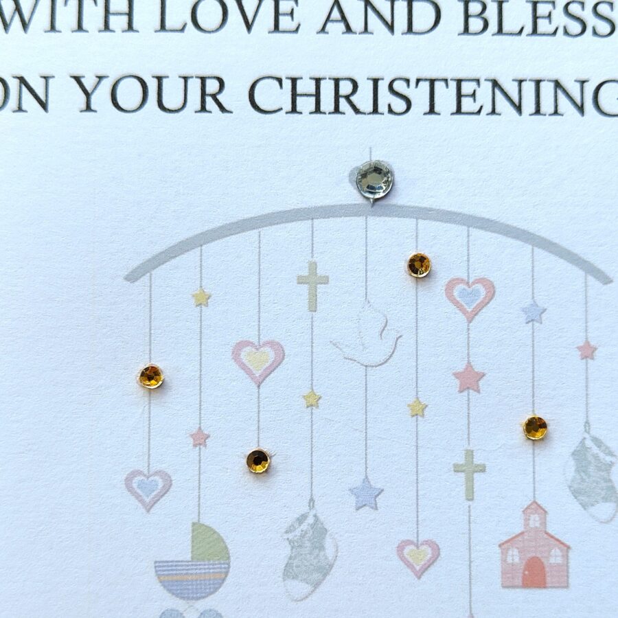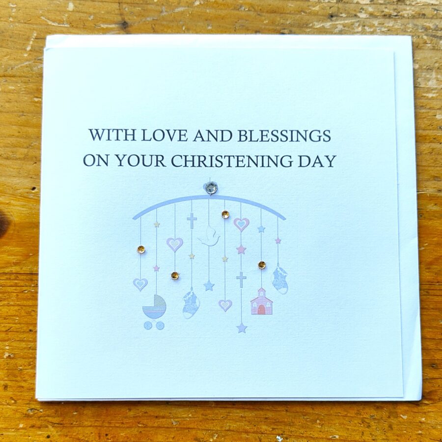 This card includes sparkly gems and/or buttons, creating a unique and eye catching item. It is blank inside for your own message and comes with an envelope in a home-compostable clear sleeve. The receiver could also frame the card afterwards as a meaningful keepsake. The maker creates all her cards from original concept, throughout the making and printing processes to the packaged product.