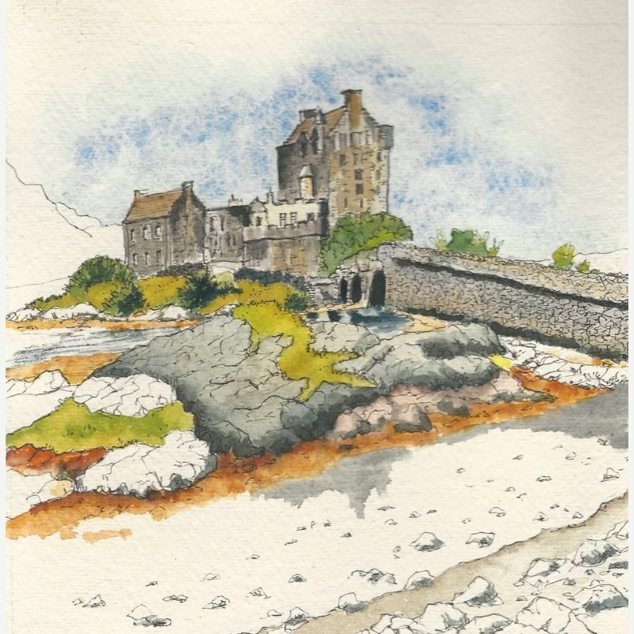 The front of this A5 notebook features a painting of Eilean Donan Castle by Kevin O'Neill. Each notebook has a sturdy 345 gsm cover and back with 30 x 170 gsm plain pages (60 sides). Ideal for sketching and notes.