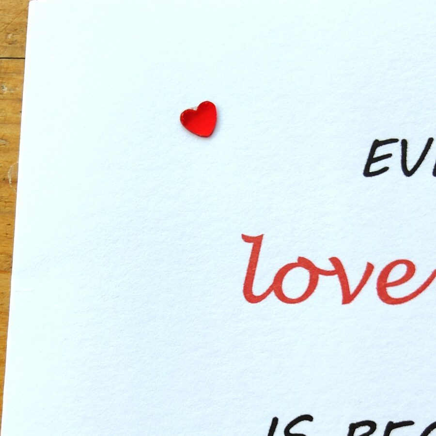 This card includes sparkly gems and/or buttons, creating a unique and eye catching item. It is blank inside for your own message and comes with an envelope in a home-compostable clear sleeve. The receiver could also frame the card afterwards as a meaningful keepsake. The maker creates all her cards from original concept, throughout the making and printing processes to the packaged product.