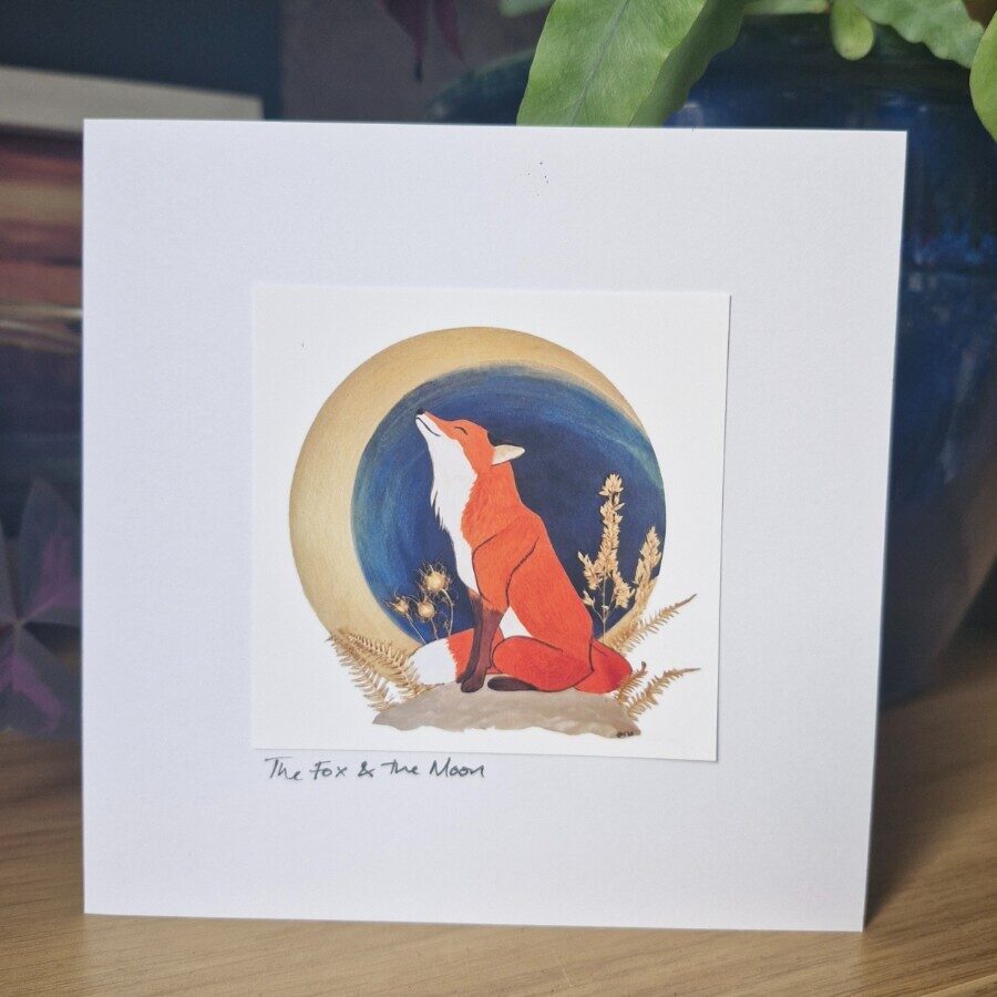 A beautiful handmade card with a print of an original artwork "The Fox and the Moon" by Hannah MacIver. The card is left blank inside for your own message.