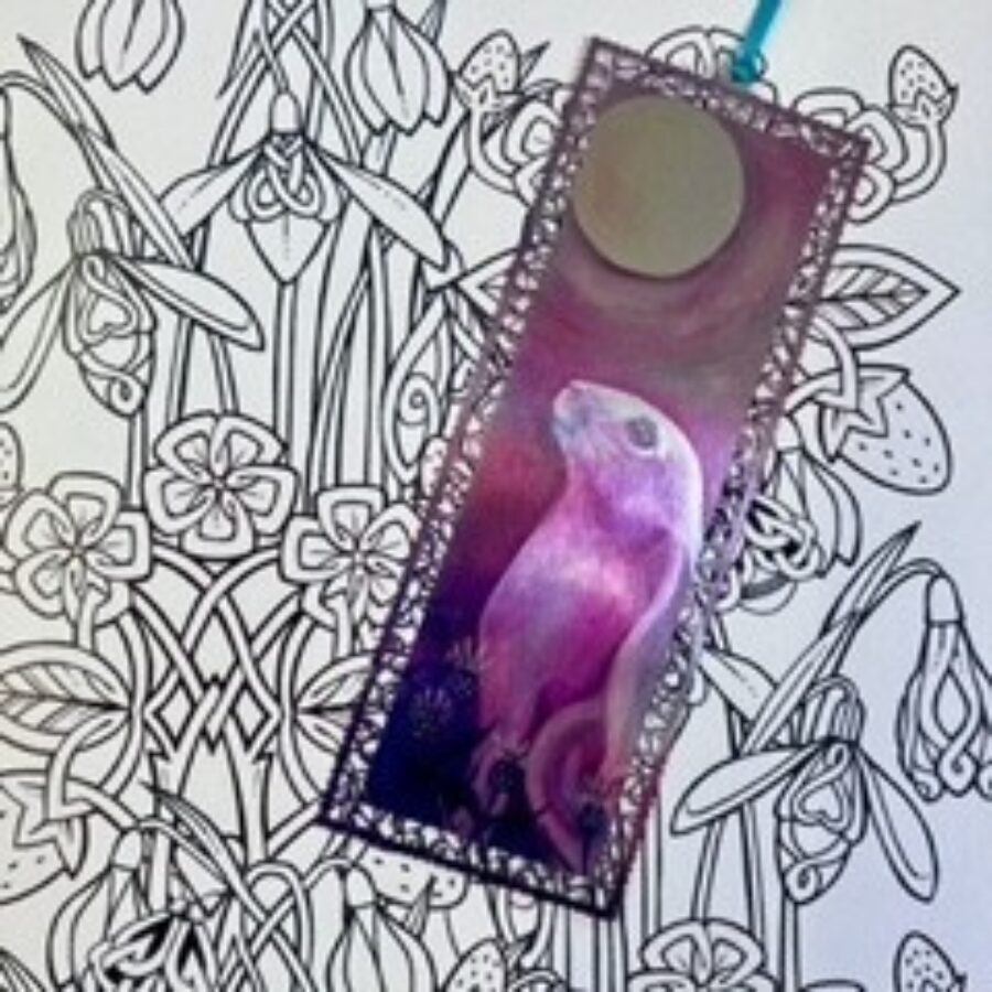 A charming Moon Gazing Hare aluminium bookmark printed on both sides, has an ornate border around the edge and is finished off with a satin ribbon. Each bookmark is sold in card packing and cellophane wrapper making it an ideal gift.