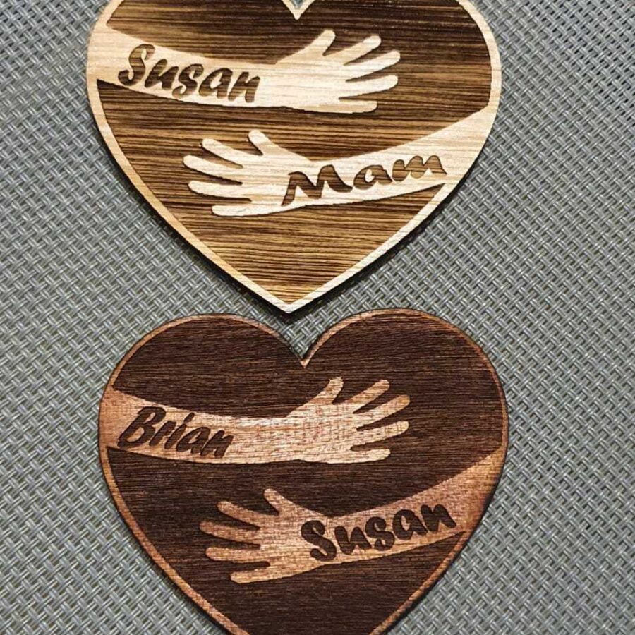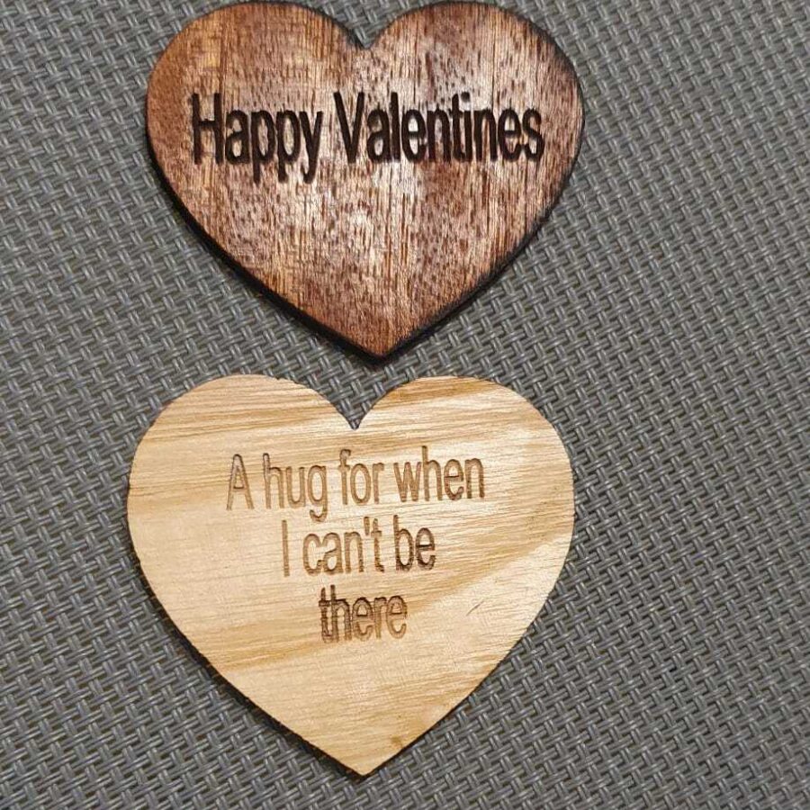 Thoughtful keepsake wooden pocket hugs available in two sizes. Choose from light or dark hardwood. The name is written on the front and message on the back. Add your name and message in the comment box on ordering.