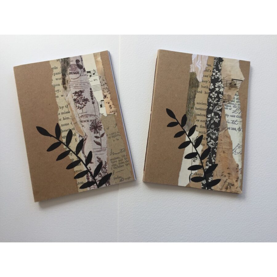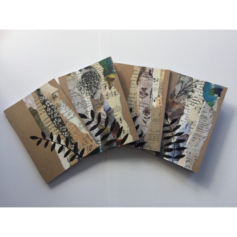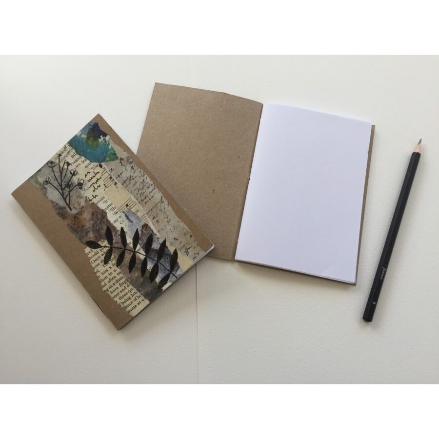 Kraft notebook with botanical collage design. These pretty softcover little notebooks are ideal for to-do lists, note taking or writing daily thoughts in. 80 pages of 80gsm recycled copier paper makes them the ideal size to pop in your bag or slip into a pocket. Each notebook design varies, the photos are examples of what they look like, not the actual notebook you will receive.