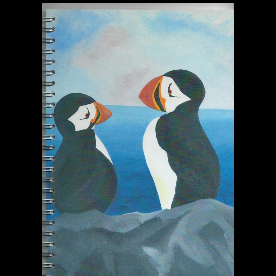 The front of this notebook features a painting of puffins by Kevin O'Neill. Each notebook has a sturdy 345 gsm cover and back with 30 x 170 gsm plain pages (60 sides). Ideal for sketching and notes.