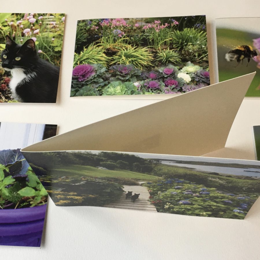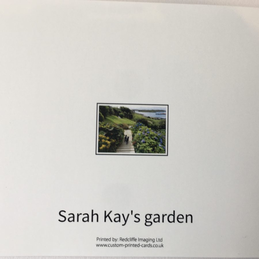 Pack of 5 cards featuring the artists garden in Shetland. The garden is next to the artists studio at Scalloway, Shetland and is open to the public, raising money for charity as part of Scotland's garden scheme.
