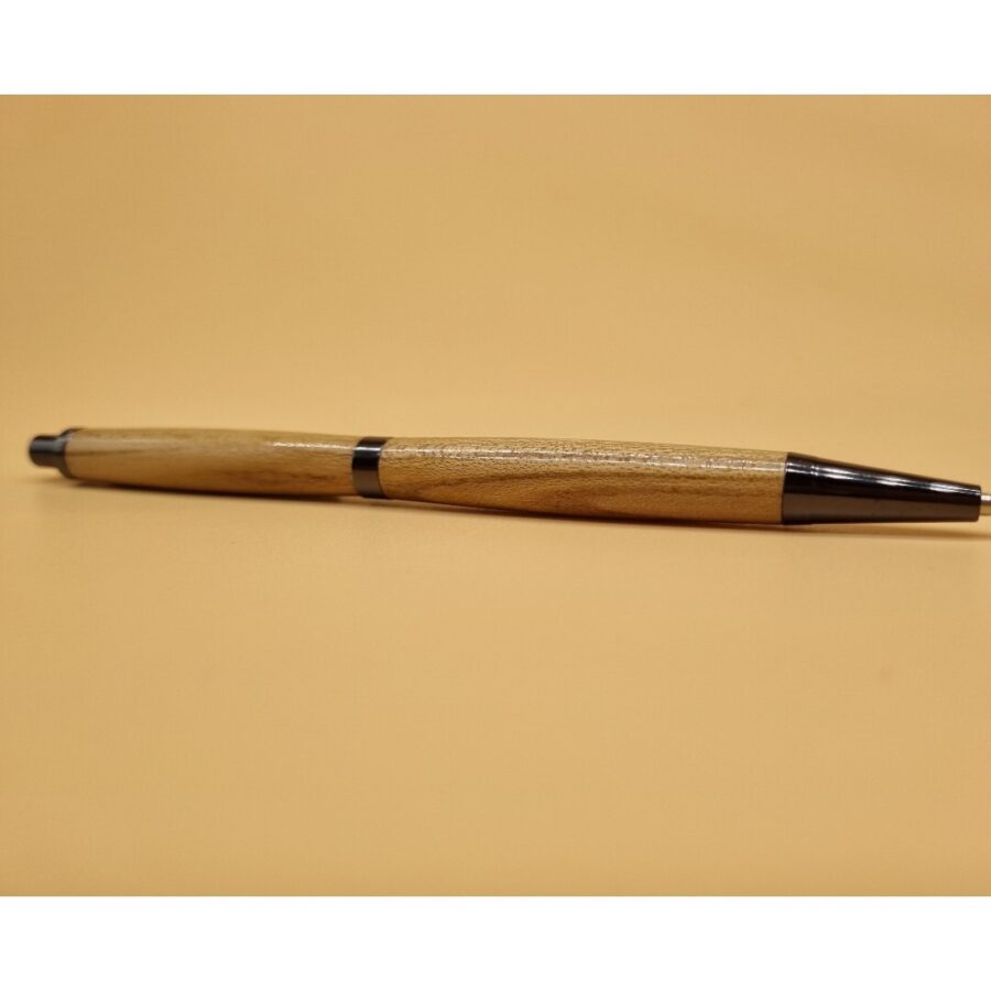 A beautiful hand-turned elm slimline twist pencil made from locally sourced windblown and recycled wood with black fittings. Finished in resin and polished for a hard wearing super high gloss finish.