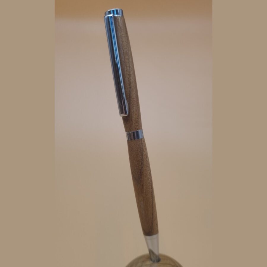 A beautiful hand-turned elm wood slimline twist pen made from locally sourced windblown and recycled wood. Finished in resin and polished for a hard wearing super high gloss finish.