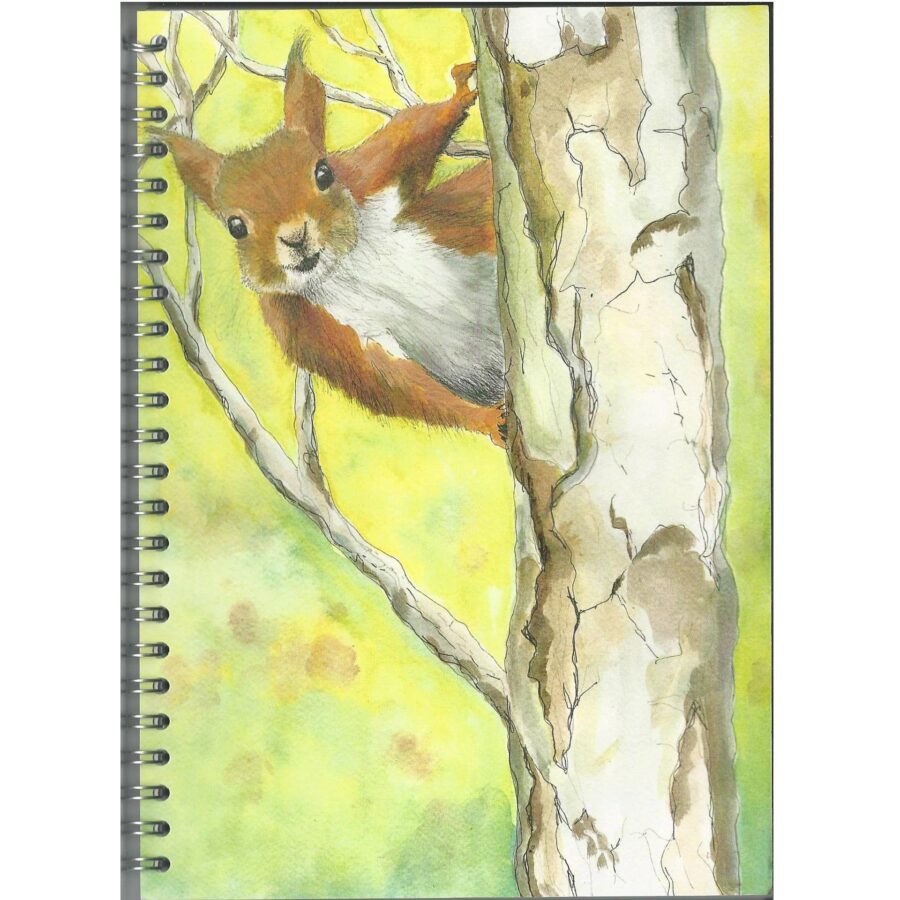 The front of this notebook features a painting of a squirrel by Kevin O'Neill. Each notebook has a sturdy 345 gsm cover and back with 30 x 170 gsm plain pages (60 sides). Ideal for sketching and notes.