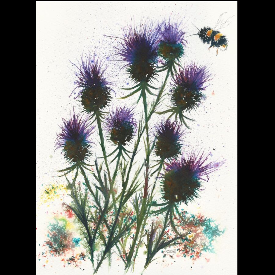 The front of this notebook features a painting of thistles and a bee by Kevin O'Neill. Each notebook has a sturdy 345 gsm cover and back with 30 x 170 gsm plain pages (60 sides). Ideal for sketching and notes.