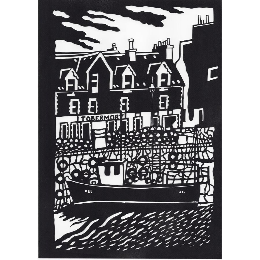 The front of this A5 notebook features a paper cut scene of Tobermory by Kevin O'Neill. Each notebook has a sturdy 345 gsm cover and back with 30 x 170 gsm plain pages (60 sides). Ideal for sketching and notes.