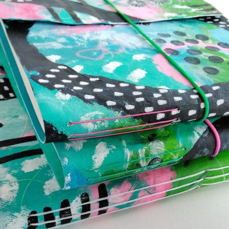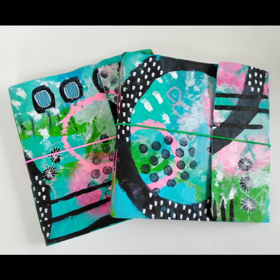 This softcover square sketchbook measures approximately 15.5 x 15.5cm and is filled with 250 gsm mixed media paper. It is bound by hand and has 48 pages to fill with your own art work. The elastic closure and cover flap keeps it closed and protects the pages when not in use. This sketchbook opens completely flat which is perfect for painting and slim enough to pop into your bag. Original cover artwork is by Shelley Kennedy. Please note that the design varies as Shelley makes a much larger sheet and then cuts down to make the book covers, so each one will differ. The photos are examples of the design and although you may not receive one of the books pictured you will get one similar.