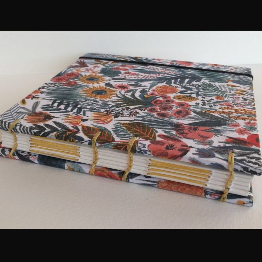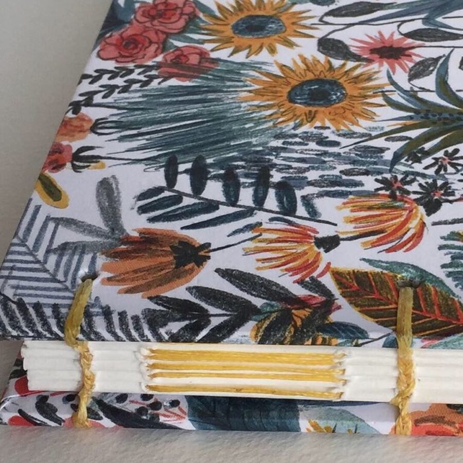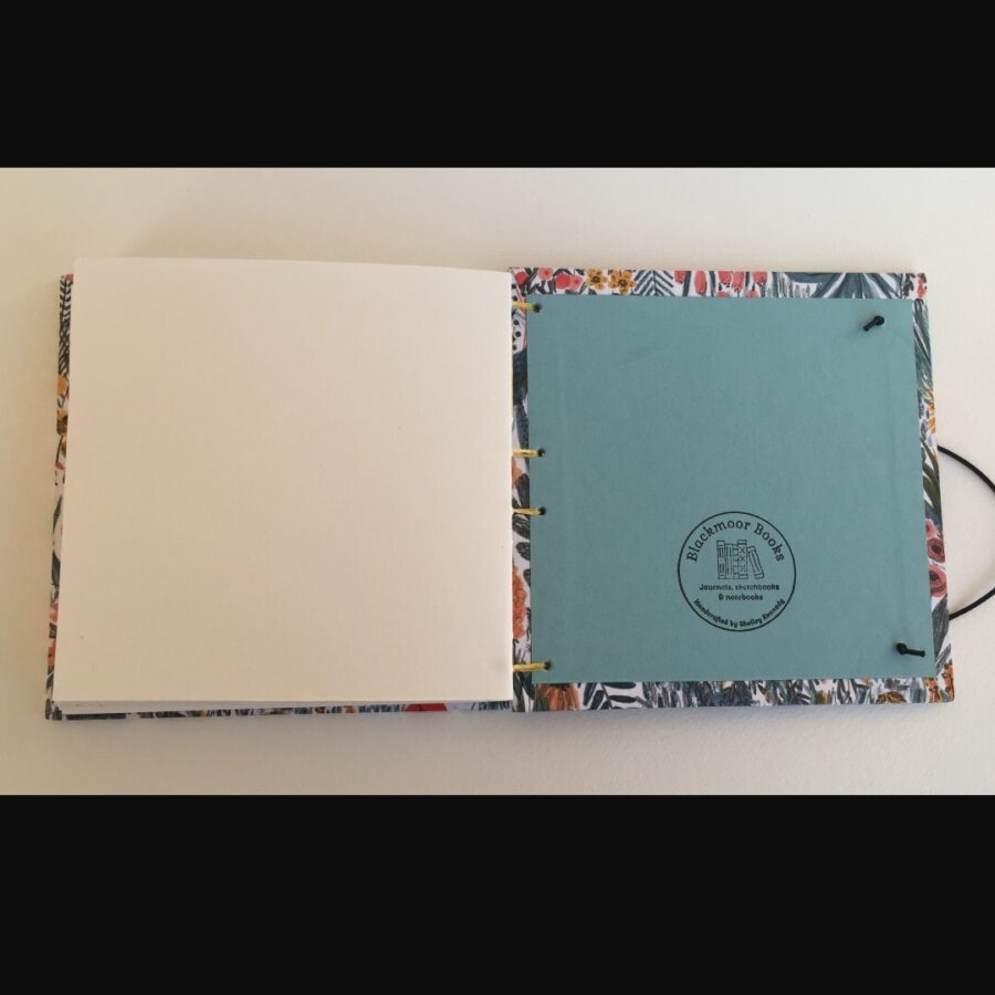 This lovely wildflower square sketchbook measures approximately 14.7 x 14.7 cm and is filled with 250 gsm mixed media paper. It is Coptic bound by hand and has 60 pages to fill with your own art work. The elastic closure keeps it closed when not in use. This sketchbook opens completely flat which is perfect for painting and drawing.